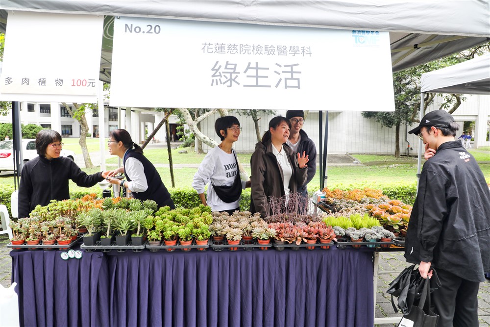 花蓮慈院檢驗醫學科帶來療癒人心的植栽義賣。