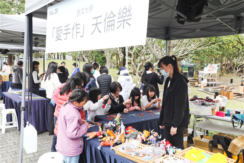 三月八日在慈濟大學中央校區舉辦「共善傳愛、募心募愛」園遊會上,花蓮鄉親與慈濟四大志業同仁攜家帶眷參與盛會響應獻愛。