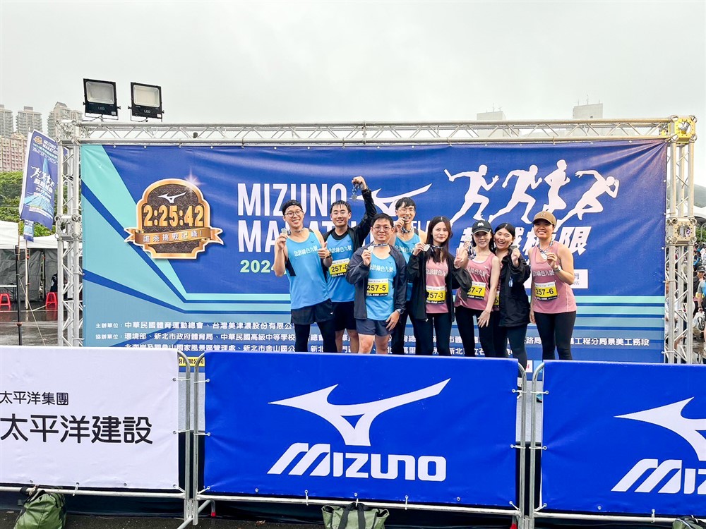 蔡譯萱護理師(右三)與急診同仁相約參加馬拉松活動。圖片提供/蔡譯萱