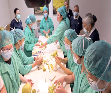 而去年接管手術室的護理部陳美慧督導特別有感,思及醫療團隊忙於工作,彼此互動並不多,便用心規畫如父親節祝福、中秋節剝柚子比賽、歲末感恩餐會,甚至還有戶外踏青、露營等一系列活動吸引許多同仁參與。陳美慧督導笑說:「初衷是希望透過各式活動促進同仁與同仁、單位與單位之間的互動,辦理後確實也收到許多迴響,許多醫師、護理師都回饋手術室氛圍變得溫馨,讓我覺得非常值得且有意義。」
