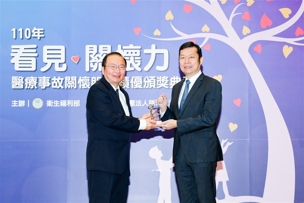 二○二一年「醫療事故關懷服務績優表揚」頒獎典禮,程紹智主任獲得個人組優等。圖片提供/財團法人藥害救濟基金會