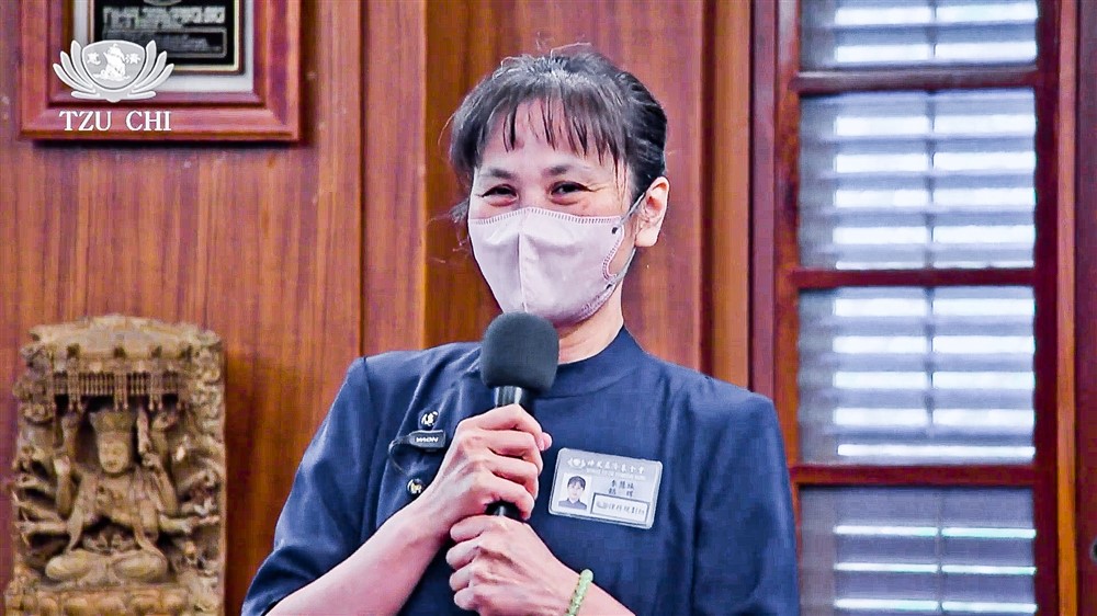 來自臺灣桃園的陳賜穎護理師說:「我好開心, 終於可以親自面見上人!」她有加護病房、眼科、產科、精神科病房、學校教育等二十多年臨床的護理經驗,參與了街友、脊髓損傷中心、北區兒童之家育幼院等義診關懷。