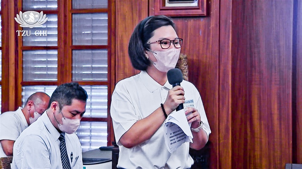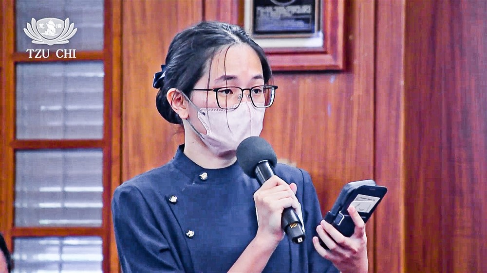 來自馬來西亞吉打洗腎中心的印度裔護理師,二十三歲的蒂婉心妮,首次參加人醫年會,與上人分享她閱讀《靜思語》後在生活中的體悟;過去在護理工作中,一出現壓力或挑戰時她會直接做出情緒反應,但透過上人的教誨,她學會在回應之前先安靜思考,「我體會到,一顆平靜的心能夠帶來清晰的思考,而以慈悲去理解他人,遠比情緒化的反應更有力量。」
