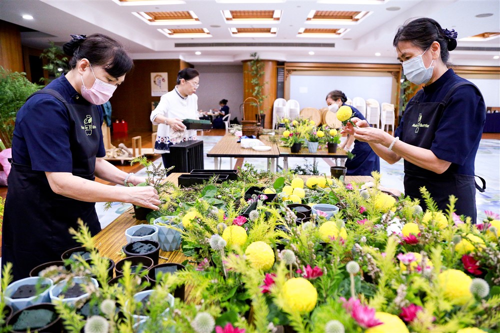 花藝布置組以花材呈現月圓人圓的景致。攝影/孫保源