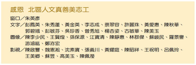 德旻師父叮嚀所有功能菩薩既然幸福地承擔這一年一度的人醫年會,就要精進圓滿團隊的使命。
