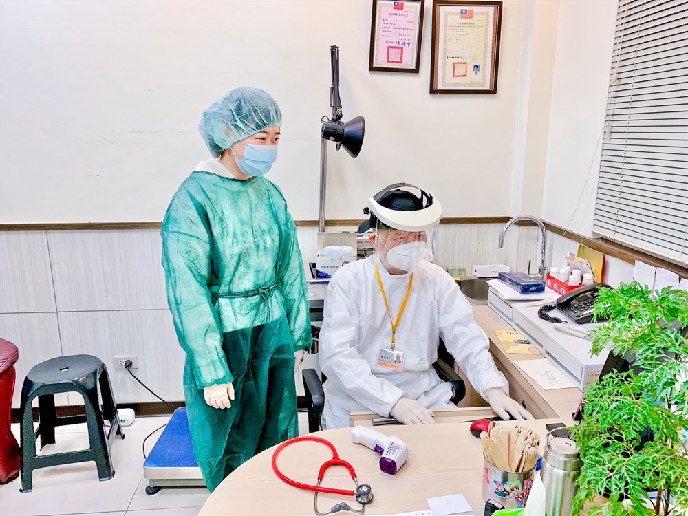 謝佳穎(左)踏上父親來時路, 疫情期間,她也至診所協助相關庶務。圖/謝佳穎提供