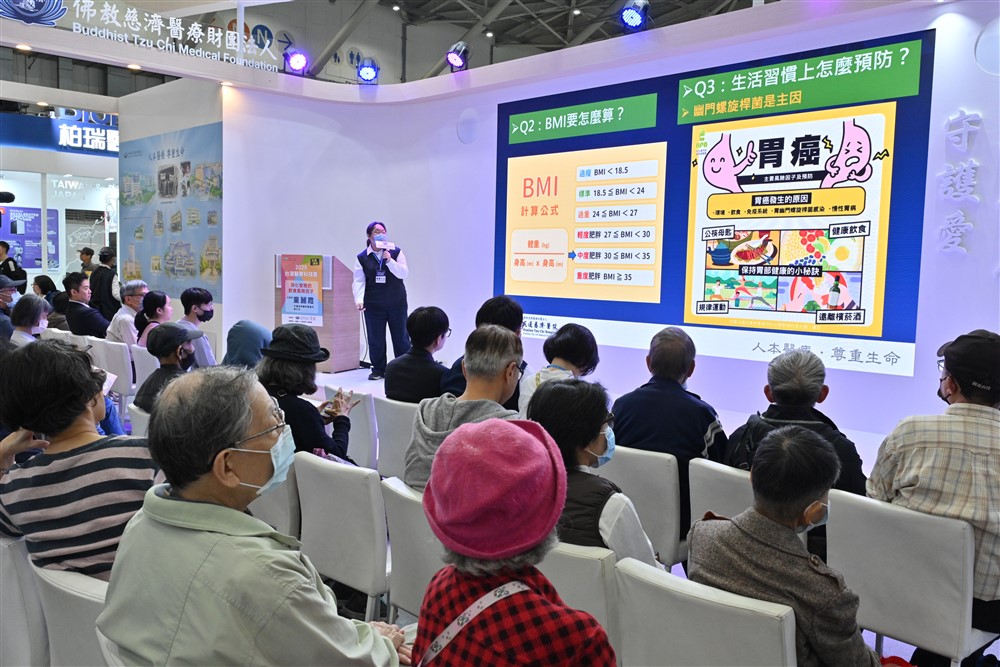 花蓮慈濟醫院營養科副主任童麗霞教導民眾如何預防消化道癌症。攝影/黃銘村