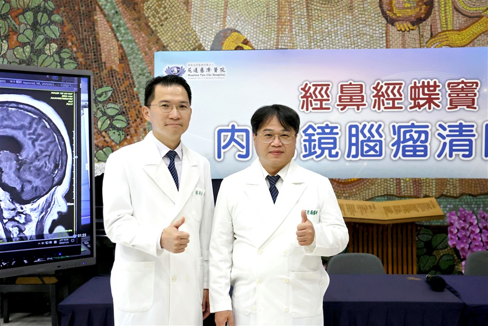 花蓮慈濟醫院耳鼻喉科周昱甫主任(右)從二○○四年開始進行內視鏡顱底手術,經驗豐富,與神經外科蔡昇宗主任合作,順利成功。攝影/宋雨安
