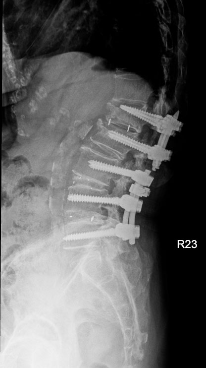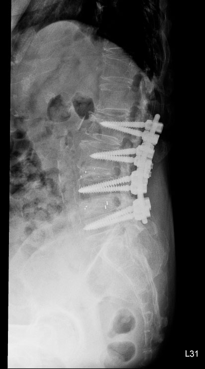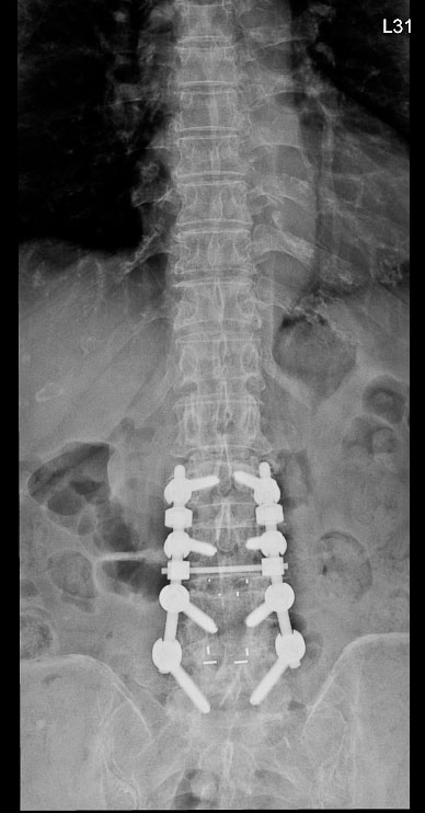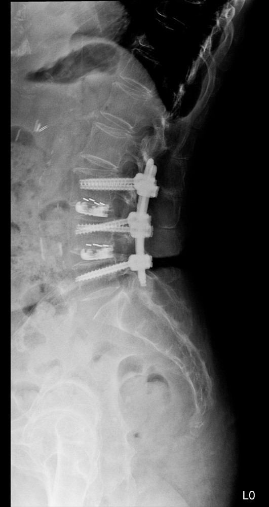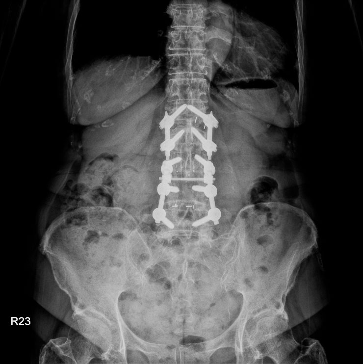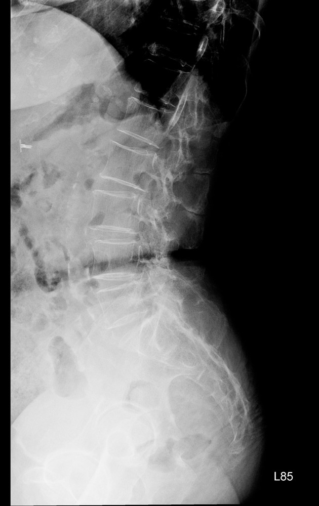 八十五歲的林女士在十多年前與七、八年前曾分別接受兩次腰椎手術,近來卻出現劇烈腰痛,翻身時疼痛指數高達八分,甚至難以入睡。影像檢查發現,她的腰椎第一與第二節出現嚴重狹窄,需要再次手術。