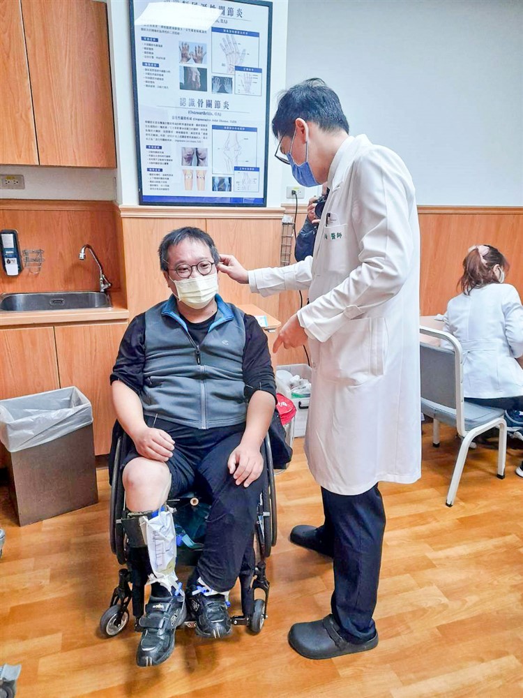 左圖:傷友楊清壬接受龔彥綸醫師的診療。攝影/林芷儀