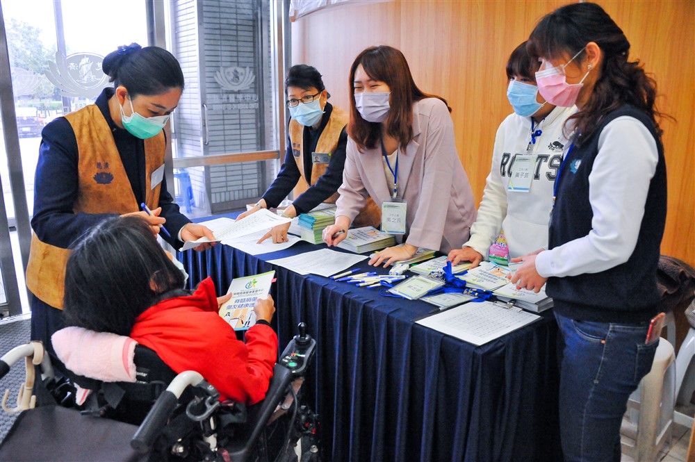 復健科義診區由楊士賢醫師帶領張逸鴻物理治療師、魏琦物理治療師以及周郁隼、劉美伶兩位醫務助理,透過肌力評估、平衡評估、日常生活評估及總諮詢三個工作站,一起為脊損朋友看診服務。