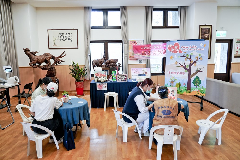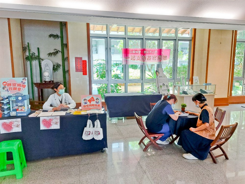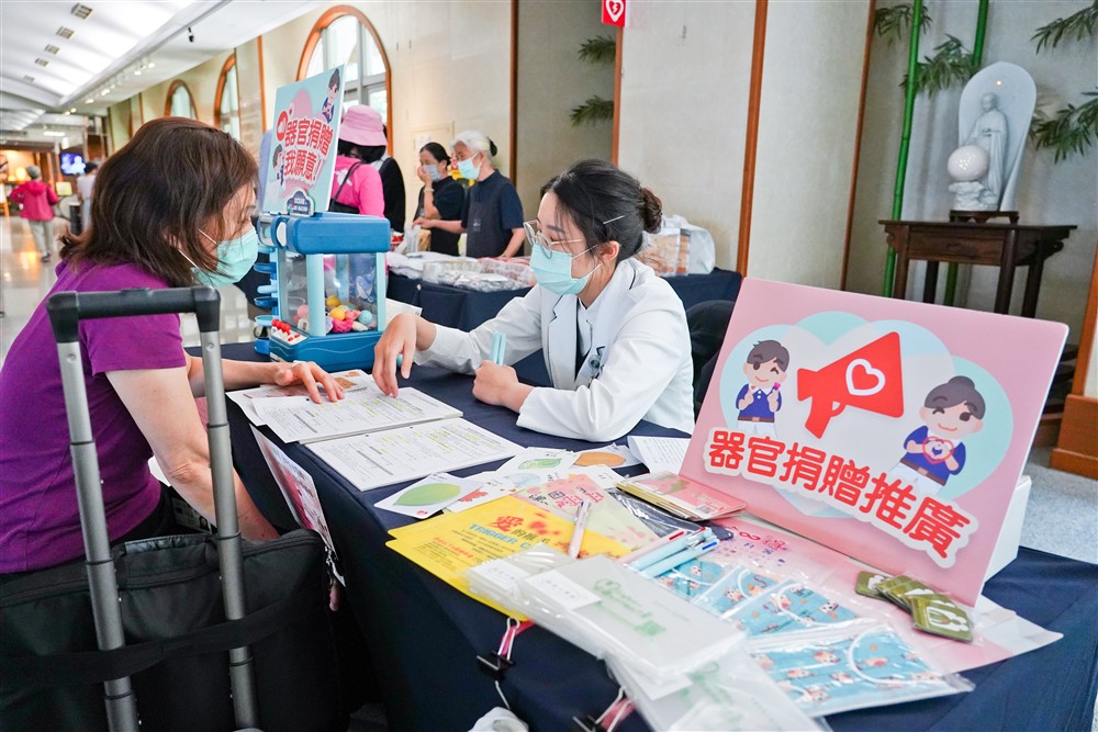 台中慈濟醫院自七月一日起在大廳設置器官捐贈簽卡站,提供「器官捐贈」、「大體捐贈」及「預立醫療決定」等簽署意願諮詢。圖/器官捐贈中心提供