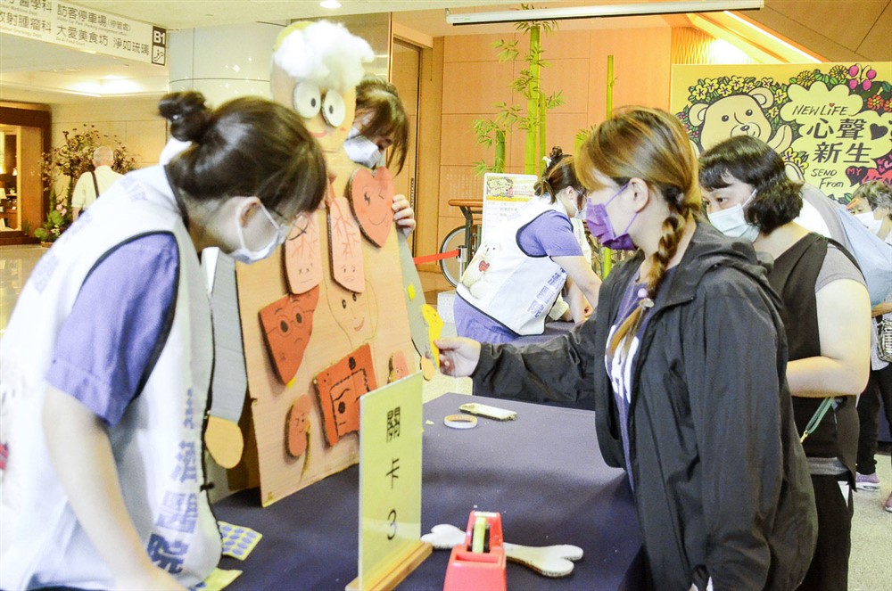 活動現場除了有器官捐贈及預立安寧意願簽署攤位,另有設置四個闖關攤位,以有獎徵答、遊戲活動等方式進行器官捐贈宣導。