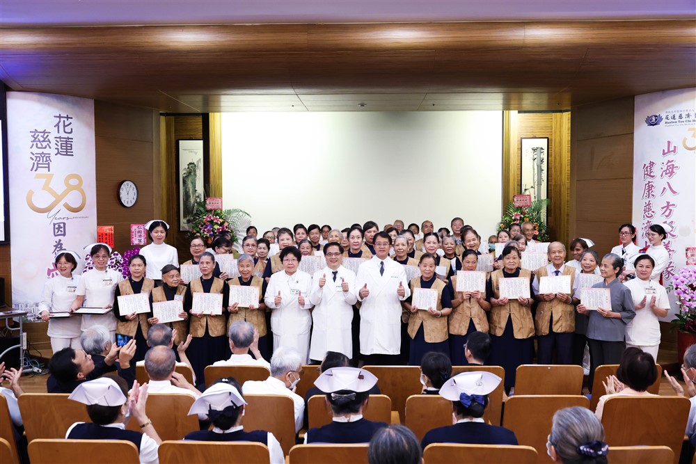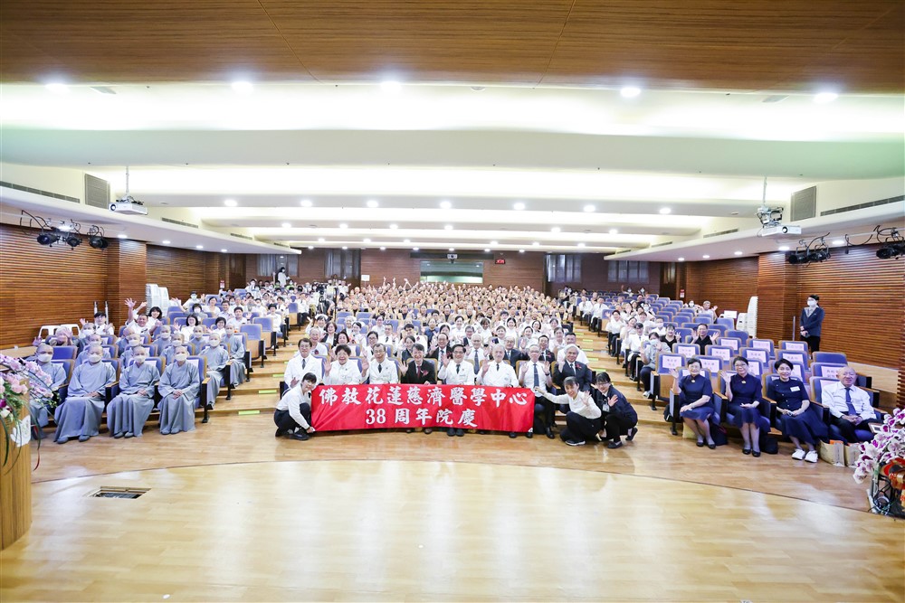 花蓮慈院八月十七日舉辦院慶大會歡度三十八歲生日,醫護、醫技、行政同仁與慈濟志工齊聚,靜思精舍師父蒞臨送上祝福,包含花蓮縣衛生局局長朱家祥、花蓮縣消防局第一大隊長林武正、健保署東區業務組組長黃兆杰、花蓮縣醫師公會理事長周朝雄、君達集團董事長尹純綢、慈濟基金會執行長顏博文、副執行長張宗義、劉銘達、慈濟教育志業執行長王本榮、慈濟大學副校長何縕琪、戴昌賢、玉里慈濟醫院院長陳岩碧、關山慈濟醫院院長潘永謙等貴賓到場祝賀,現場也透過直播與民眾一起即時見證這個充滿祝福與感恩的日子。