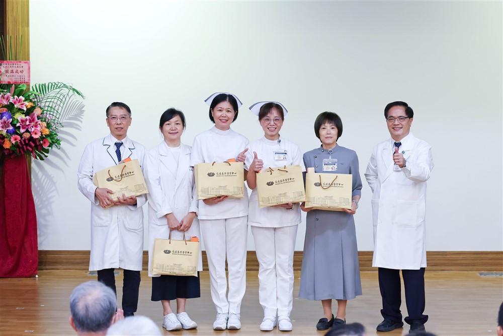 院慶大會尾聲,林院長帶領同仁至誠發願,一起守護生命、守護健康、守護愛。靜思精舍德寋法師勉語祝福:「不能醒的讓他醒,不能走的讓他走,雖然講得很local(鄉土),但是很重要!」跨海求治的香港個案、心衰竭病友的續命生機、助偏遠地區克服領藥困境的送藥服務,醫療成果始於步步踏實,在在讓人感受到,醫療之愛,改變了多少人的生命?為多少家庭帶來新的希望?願同仁秉持初衷,攜手以愛以善守護民眾健康。