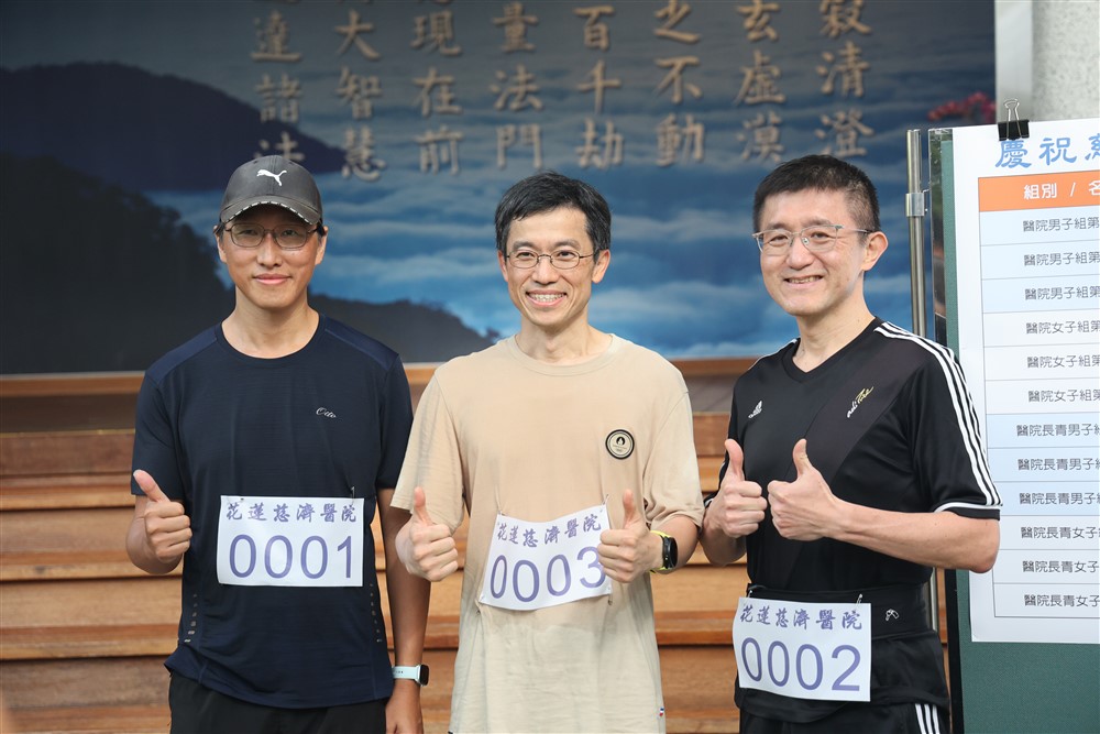 醫院長青男子組前三名為花蓮慈院眼科部李原傑主任(中)、影像醫學部王魯發放射師(右)、研究部黃玄舜副研究員(左)。攝影/陳安俞
