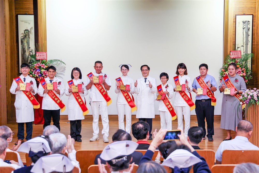 在院慶大會主持人王咏璇醫師及蘇芬蘭督導的唱名下,服務十年、二十年、三十年的資深同仁與十大傑出優良同仁分別上臺接受表揚。二十年資深同仁黃靖玲社工師發表感言提及,大學畢業後回到東部家鄉服務,過程中看見病人因病或意外而貧,能透過社工專業協助取得資源,幫助其家庭生活回歸到平穩狀態,是她作為醫務社工最大的肯定。「每個人堅守自己的崗位,發揮小小螺絲釘的功能,希望讓花蓮慈院這臺幸福列車可以走得更穩、更遠、更好。」