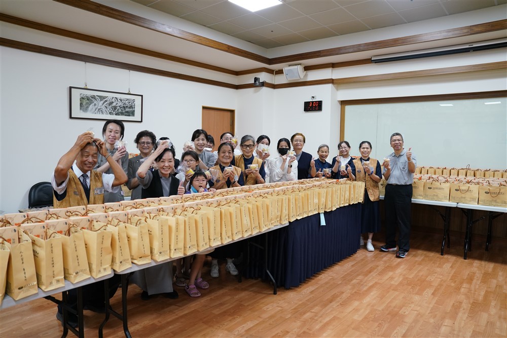 感恩人力資源室、人文室、會計室、醫務室、院長室同仁與志工們合力備辦三十八周年慶結緣品。攝影/陳炳宏