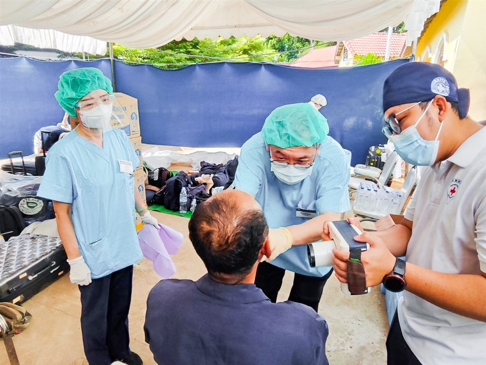 擅長特殊需求患者治療的黃文國醫師分享,一位近七十歲的老爺爺前來就診,已經有兩顆蛀爛的臼齒。黃醫師考量爺爺患有高血壓,建議爺爺先拔一顆牙齒,隔日再前來檢查並評估二次拔牙的合適性。然而,當聽完翻譯轉述爺爺的回應,黃醫師頓時陷入百感交集。原來,無力負擔當地看牙費用的爺爺,行走了近一日的路程才到這裡就診,因此若能一次解決兩顆齲齒,對他是一種莫大的恩惠,但他也完全尊重醫師的決定。黃醫師深感爺爺的無奈及難處,短暫躊躇後最終決定達成爺爺的願望,並審慎處理傷口及延長加壓止血的時間,不忘請翻譯一再叮囑爺爺傷口照護的方式。黃醫師微笑說道:「爺爺離開前向我比了一個『OK』的手勢,雖然我們語言不通,但是他滿足的笑容已經烙印在我的心中,讓我無法忘懷。」而首次參與海外義診的盧博彥住院醫師,期許自己懷著更謙卑的心,持續精進專業技術,在未來替更多需要幫助的人奉獻己力。