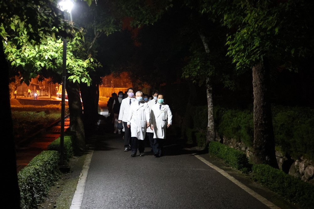 台北慈濟醫院趙有誠院長帶領醫院同仁及志工經行祈福,祝福慈濟五十九周年。攝影/王賢煌