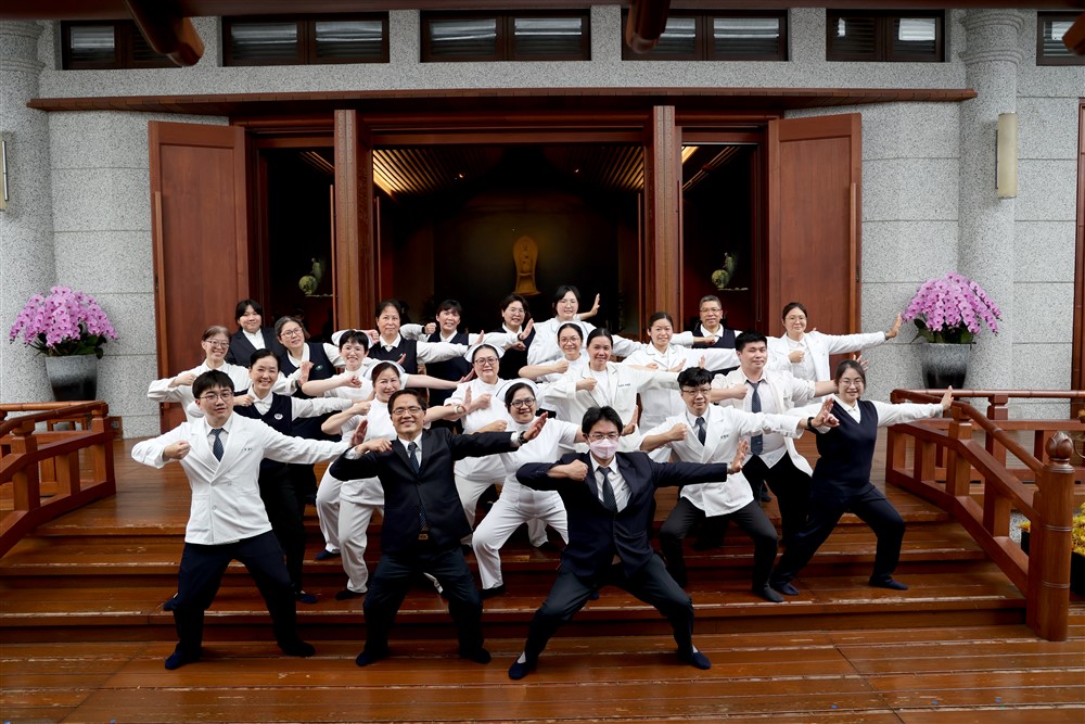 花蓮慈院林欣榮院長(前排中)和何宗融副院長(前排右)帶領花蓮慈院的團隊,用傳法健身的精神守護健康守護生命守護愛。攝影/陳安俞