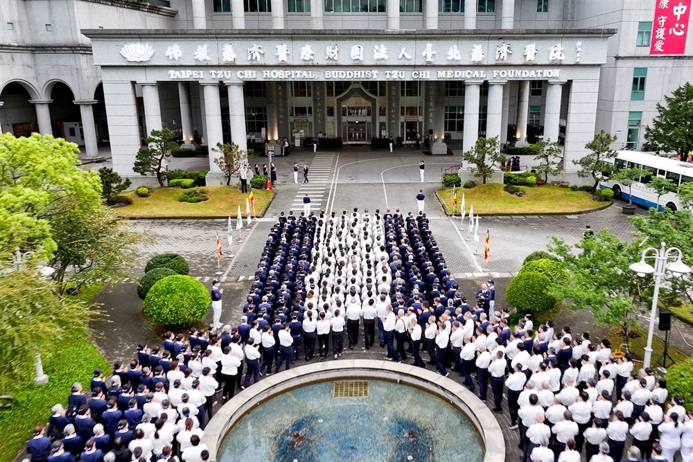 四月二十一日,台北慈濟醫院於院前廣場舉行經行祈福,趙有誠院長帶領醫院同仁及志工共七百五十五人共襄盛舉,虔誠禮佛,唱誦佛號,祈禱天下無災無難。接著,志工早會四大志業連線,感恩上人的帶領,未來將堅心定念,以佛法入心入行。