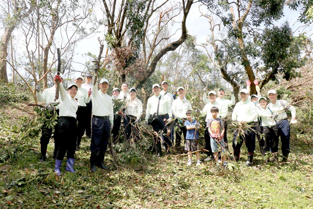 七月十二日,台中慈濟醫院簡守信院長(右六)帶領醫院同仁,前往嘉義妙雲蘭若清除倒塌樹木。攝影/陳彥儒