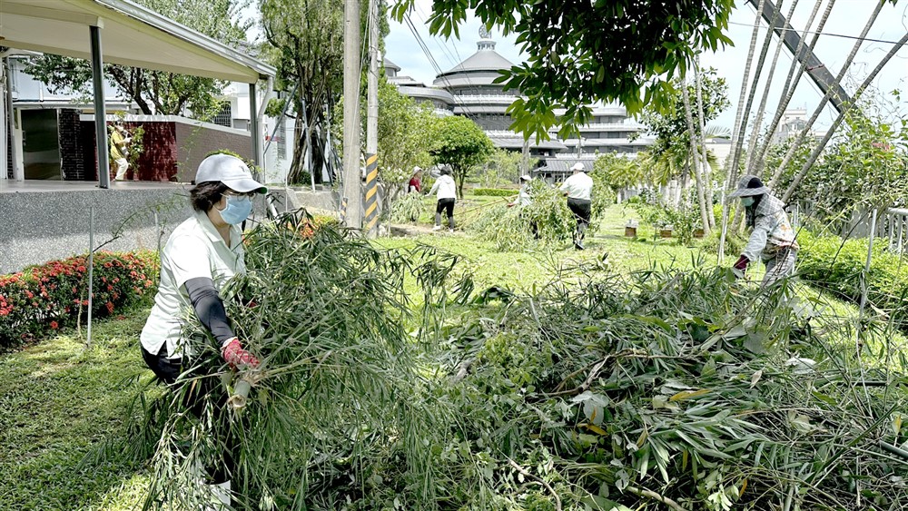 護理部黃秀月專師說:「感恩這次風災,讓我及家人都平安,房子及車子也無事,才能參與妙雲蘭若樹枝的清理。」她看到許多家庭的屋頂被吹走,樹木被折斷、鐵捲門無法開啟,身家財產受到損壞;除了無奈,心中也生起煩惱。黃秀月專師說,感恩這次有植福田的機緣,除了親近佛門,可以幫助師父們清理寺院,也讓自己更加「知福,惜福,再造福」。