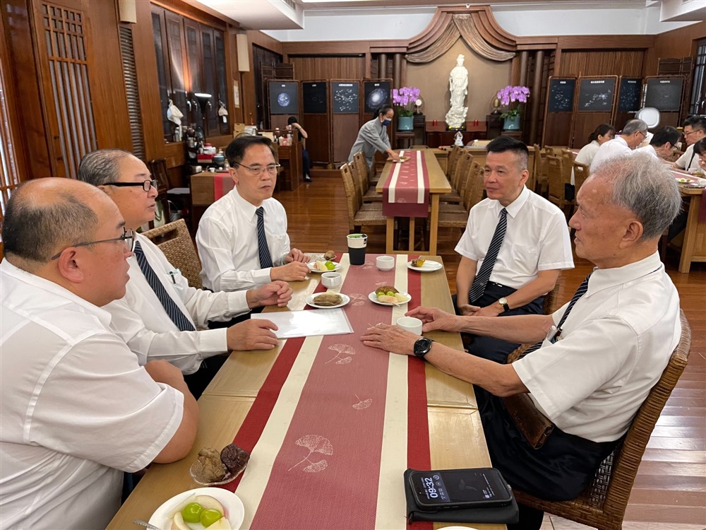 九月二十四日上午,慈濟醫療法人執行長林俊龍(右一)、花蓮慈濟醫院林欣榮院長(左三)、陳星助副院長(右二)、資深顧問許文林(左二)與東區慈濟人醫會總幹事林永森召開光復鄉災情的醫療應變會議。