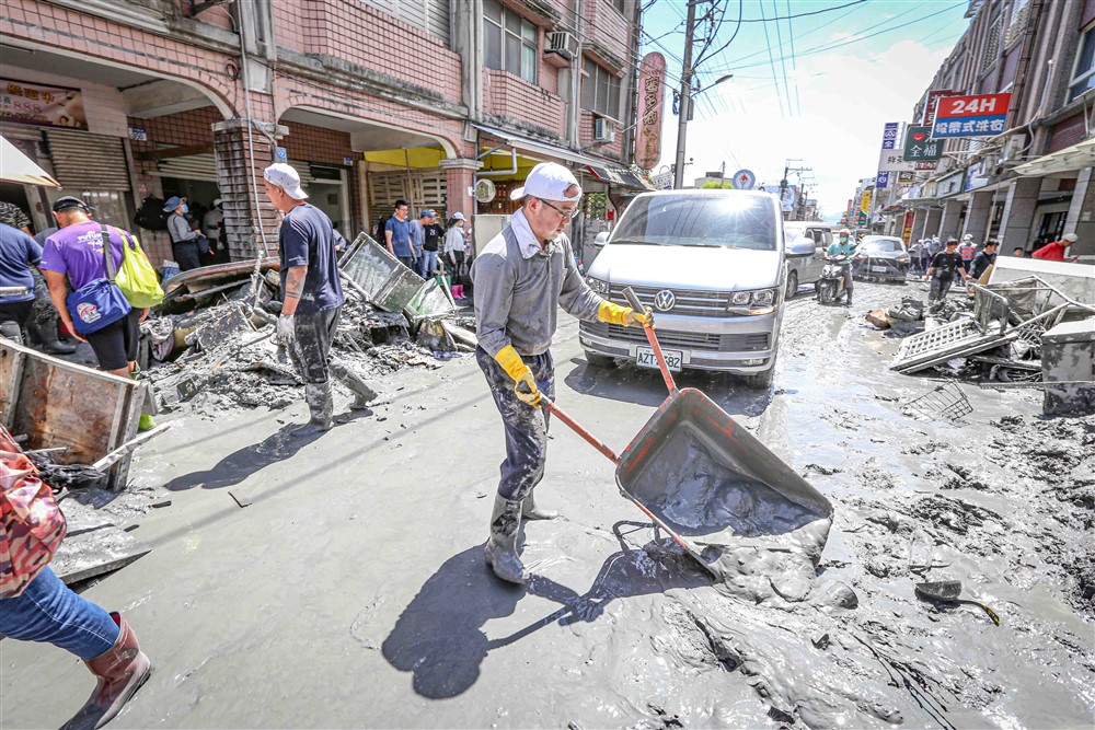 花蓮慈院傷口造口小組護理師鄒明耘,看到母親連三天從臺北到光復協助重整家園的熱血,以及擔任消防員的先生連日投入救災,便利用休假和同事加入「鏟子超人」行列。