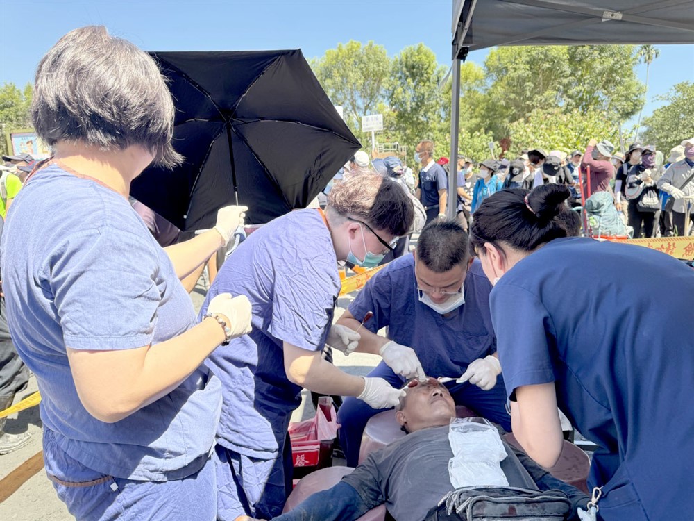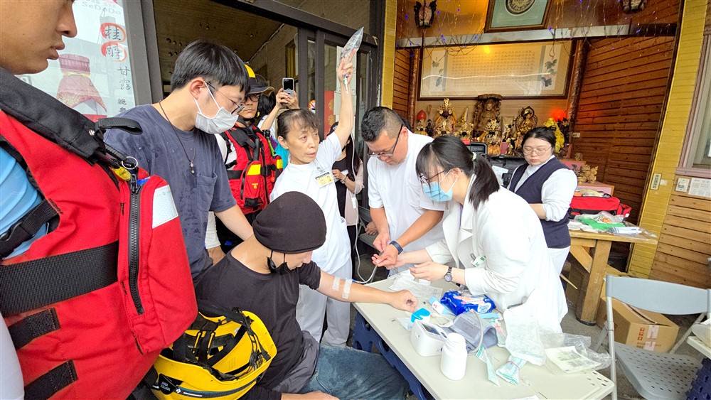 何副院長說,中醫團隊特別加開醫療區,提供針灸、推拿及藥物調理,協助救災人員舒緩不適、補充體力。同時提醒,在任務之餘務必注意保暖、多補充水分與適度伸展,才能持續守護鄉親的健康與安全。