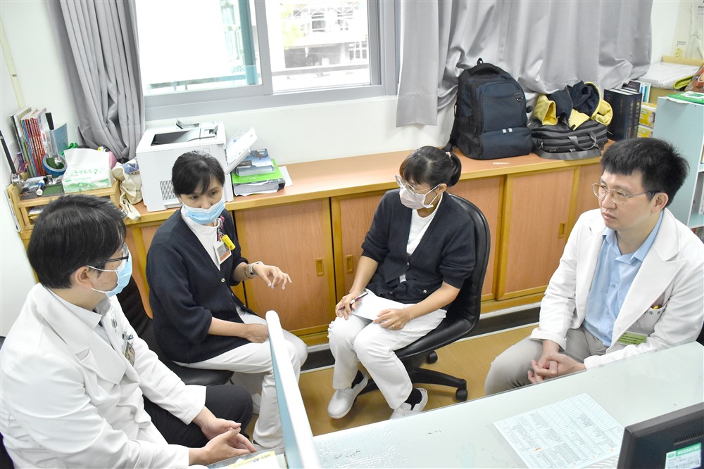 九月二十六日,吳勝騰副院長(左一)召集IDS 醫療團隊研擬應變方案,確保院內外醫療服務都能兼顧。右一為李宗晉醫師。攝影/陳慧芳