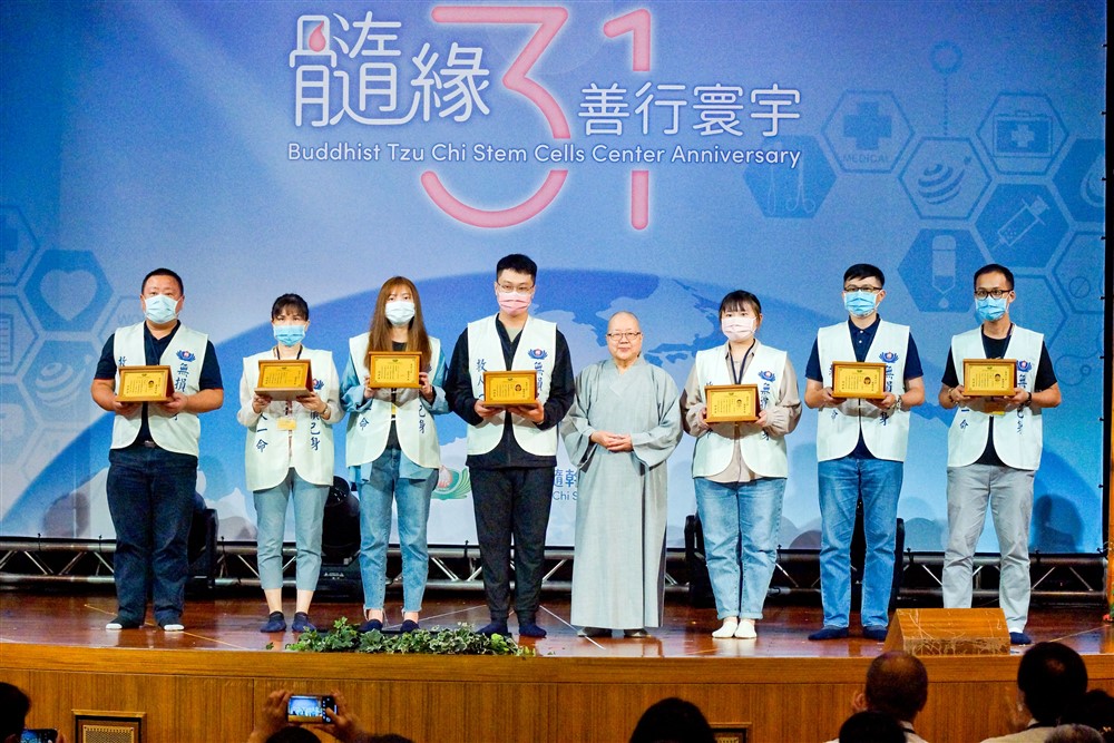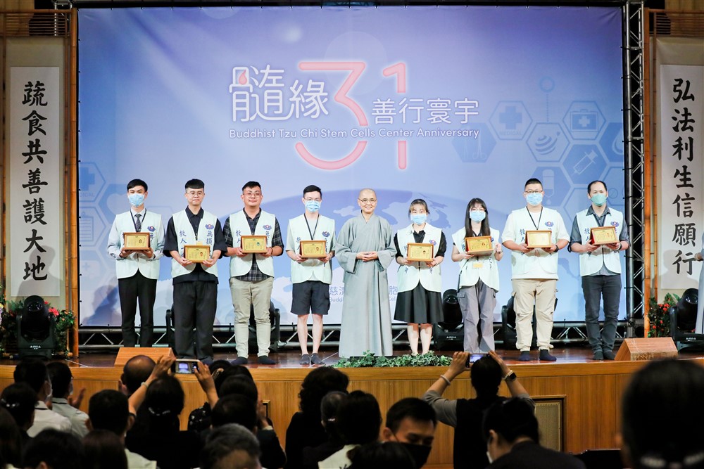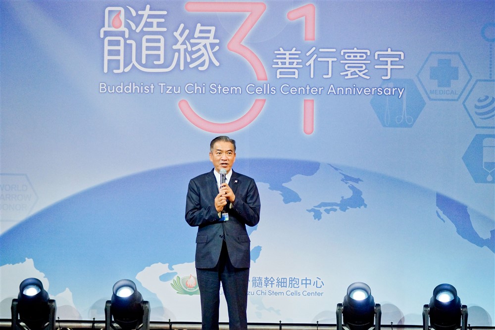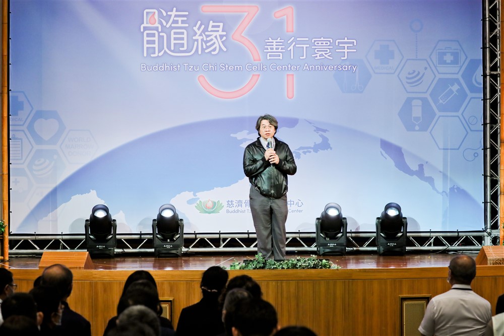 慈濟慈善志業何日生副執行長致詞表示,慈濟骨髓幹細胞中心成立至今挽救生命無數,他在二○○二年依上人慈示前往全世界採訪骨髓移植,「美國約翰霍普金斯大學的幹細胞中心主任說骨髓移植本身就是一場戰爭,這場戰爭對家屬對患者來說都非常艱巨,一個骨髓庫不只需要捐者,還經過科學家很多努力,我曾造訪骨髓移植之父湯瑪士博士,他拿到諾貝爾獎,挽救幾萬人,因為他發明配對的科學方法。」何副執行長提到他也見證很多志工,為了勸髓即使受著很多委屈卻仍然勇往直前,成就慈濟骨髓庫,「今天見證骨髓庫成立三十一年,許許多多的愛心匯聚,來見證上人所說『捐髓救人無損己身』,這是人類最純淨的清水之愛。」