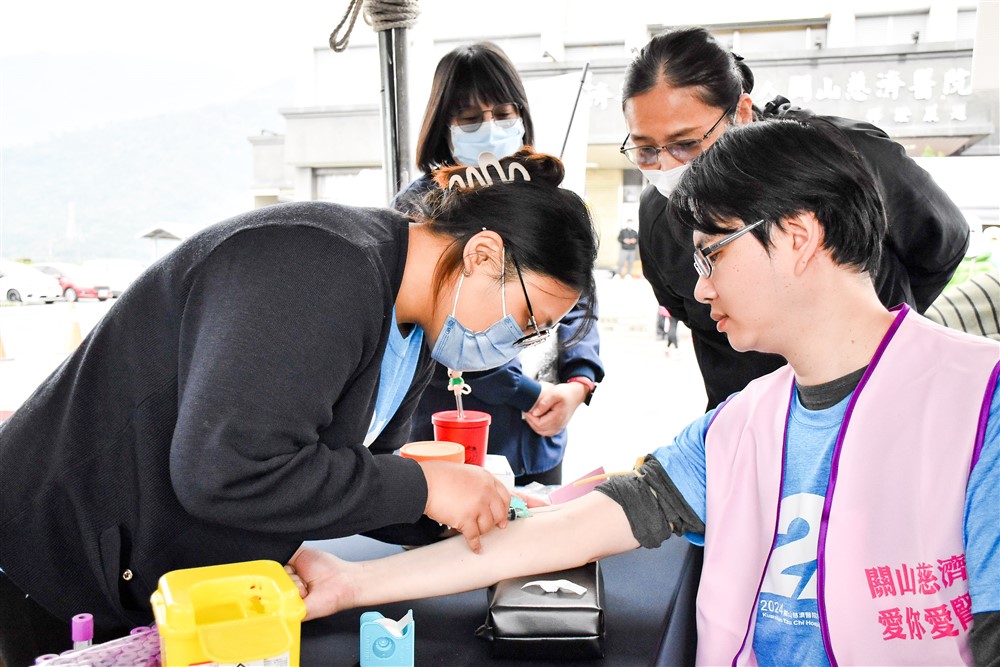 關山慈院與慈濟骨髓幹細胞中心合作,於院慶活動現場設立幹細胞驗血宣導攤位。