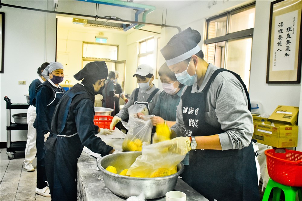 負責院慶餐點服務的志工與同仁,早早就忙著準備美味熱食,為了讓參賽選手在完賽後能補充能量