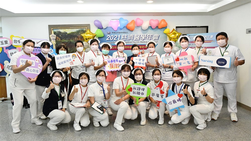 為永續發展並培養醫療專業人才,每年舉辦慈濟醫學年會促進跨領域交流(上圖),會中同時舉辦「百年好合護理照護品質暨創新成果發表會」(下圖),提升護理專業。