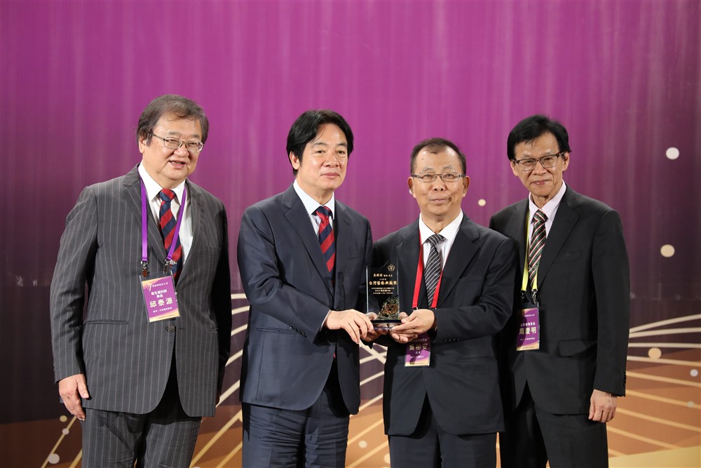 吳彬安副院長(右二)在全聯會醫師節慶祝大會, 接受總統賴清德(左二)頒發「臺灣醫療典範獎」表揚。左一為衛生福利部部長邱泰源、右一為全聯會理事長周慶明。攝影/游濬紘