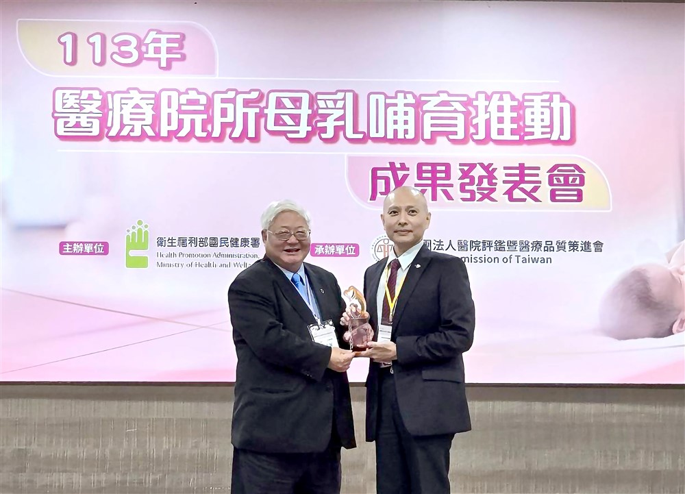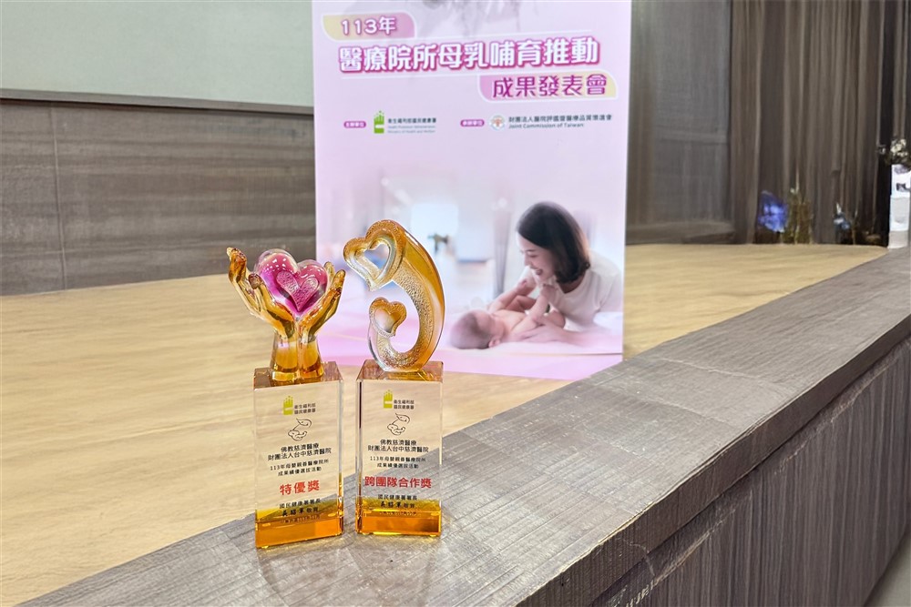 台中慈濟醫院母嬰親善團隊獲國健署頒發「特優獎」與「跨團隊合作獎」。