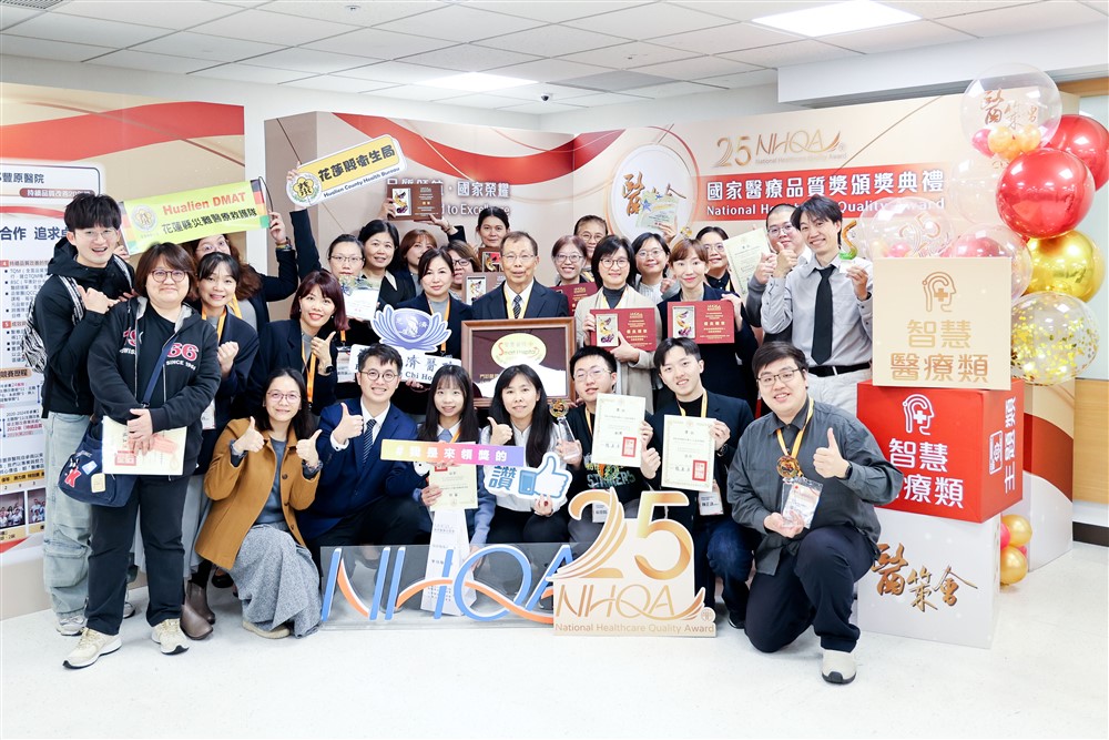 財團法人醫院評鑑暨醫療品質策進會二○二五年一月十五日舉行第二十五屆NHQA 國家醫療品質獎頒獎典禮,花蓮慈濟醫院以打造無圍牆醫院為目標,長年致力於翻轉偏鄉醫療,分別在「智慧醫療類」、「實證醫學類」及「主題類」共計取一金二銅等十八個獎項,且一次通過智慧醫療類門診服務、住院(含ICU)服務、行政管理服務、檢驗/檢查服務、急診照護、手術照護等六大領域共十二項標章,獲頒「智慧醫院全機構標章」殊榮。林欣榮院長表示,感恩團隊用高品質的標準守護病人健康,NHQA 的肯定是花蓮慈院整體品質提升的成果。