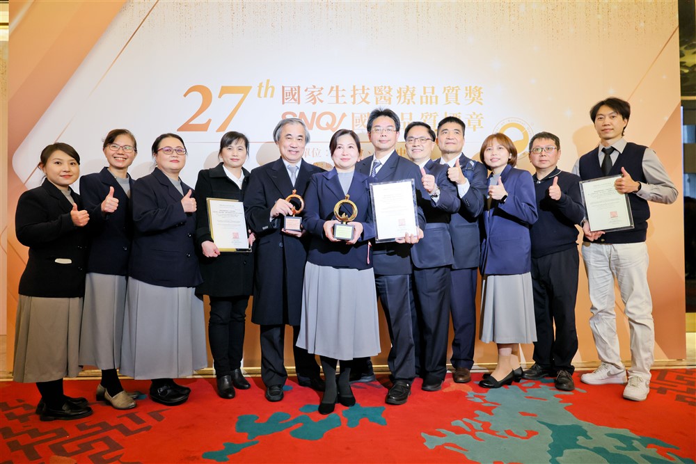 花蓮慈濟醫院二○二五年一月十六日在第二十七屆國家生技醫療品質獎暨SNQ 國家品質標章授獎典禮,花蓮慈濟醫院護理部以「智能輔助護理與糖共舞」榮獲「護理照護服務類-智慧護理組」金獎,泌尿部團隊以「快樂的膀胱、健康的腎臟——為慢性脊髓損傷者量身打造安全泌尿道」榮獲「醫療院所類- 醫院特色醫療組」銅獎,另中醫部「中西醫合療新策略,中醫病房引領康復新途徑」、工務室「導入AI 智慧防災管理,提升環境安全,實踐醫院ESG 永續發展」等獲得醫療院所類SNQ 國家品質標章肯定。花蓮慈濟醫院更是本屆唯一獲得國家生技醫療品質獎金獎的醫院。