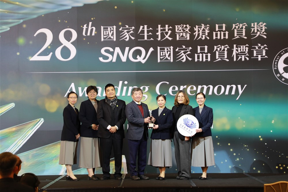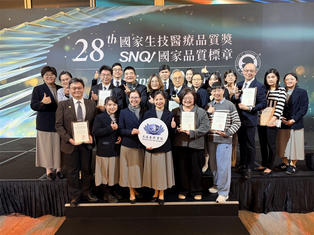 花蓮慈濟醫院二○二六年一月七日在象徵臺灣生技醫療界最高榮譽的「國家生技醫療品質獎暨SNQ 國家品質標章」頒獎典禮,以豐碩的創新成果成為全場焦點,不僅通過嚴格審查,獲得十項SNQ 標章;護理部更是繼去年(二○二五)拿下全臺唯一「金獎」後,今年以災難護理專案勇奪護理照護服務類護理領導與管理組「銀獎」。此外,花蓮慈濟醫院照護團隊有八項品質標章通過續審,積極向全臺灣展現守護生命的深度與創新的廣度。