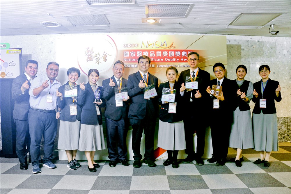 NHQA 主題類「持續品質改善十年獎」,由台中慈院醫務祕書林英超(右一)代表領獎。