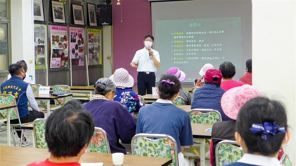 漢寶社區活動中心的定點義診上,陳俊志醫師為村民進行健康講座。攝影/陳夢希