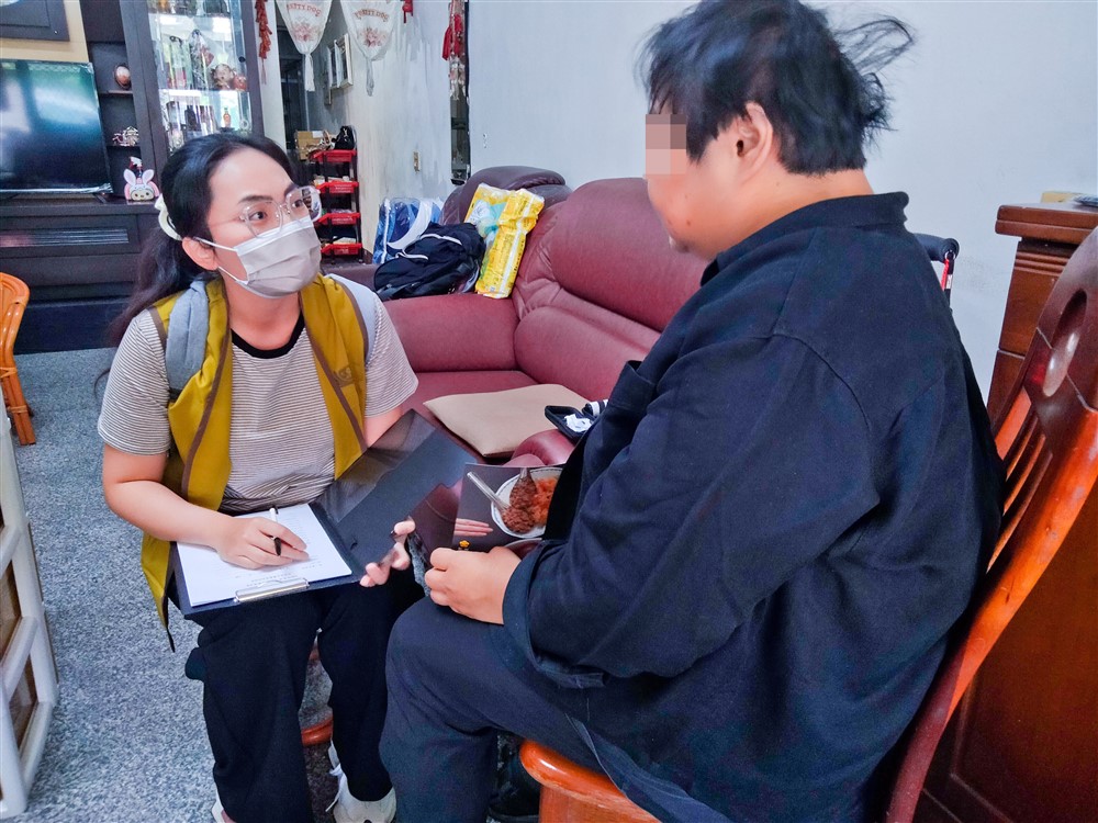 右圖:心理諮商師劉慧娟關懷案主的身心健康。
