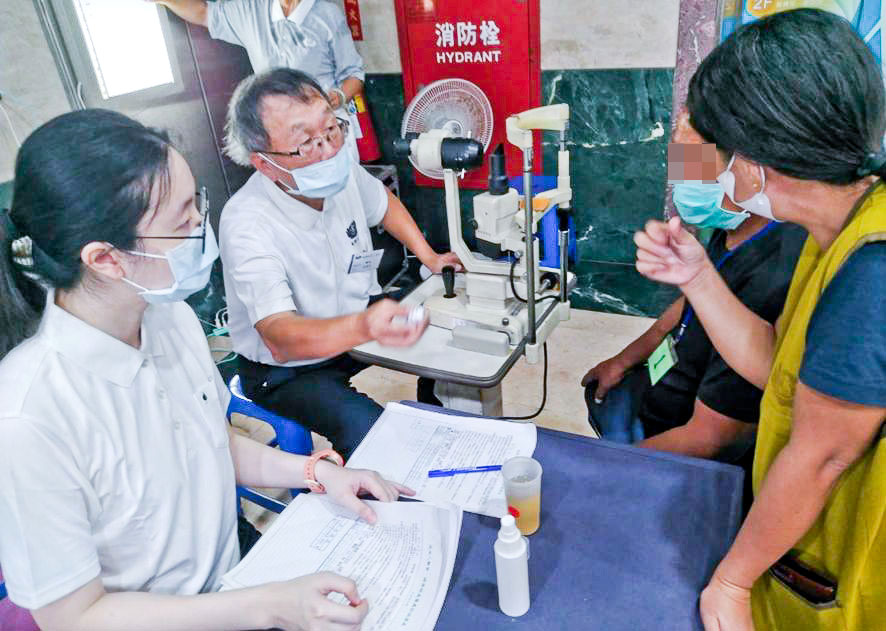 眼科莊聰吉醫師以英語向菲籍病人說明需要點眼藥水保養,翻譯志工旋即口譯,三方溝通無障礙。義診上有通曉印尼語、菲律賓語、越南語的翻譯志工群隨時接應補位,協助支援不同語言的溝通需求。遇到血壓偏高卻堅持不想拿降血壓藥物的病人,護理人員也緊急尋求翻譯志工協助同步口譯做衛教,「要定期量測並記錄血壓,睡眠要充足,不能抽菸喝酒,要從生活和飲食習慣去好好做控管。」義診團隊人人貢獻已力,在每個位置上發揮良能,悉心引導與陪伴,懷抱著溫暖與專業兼具的熱忱提供醫療服務。