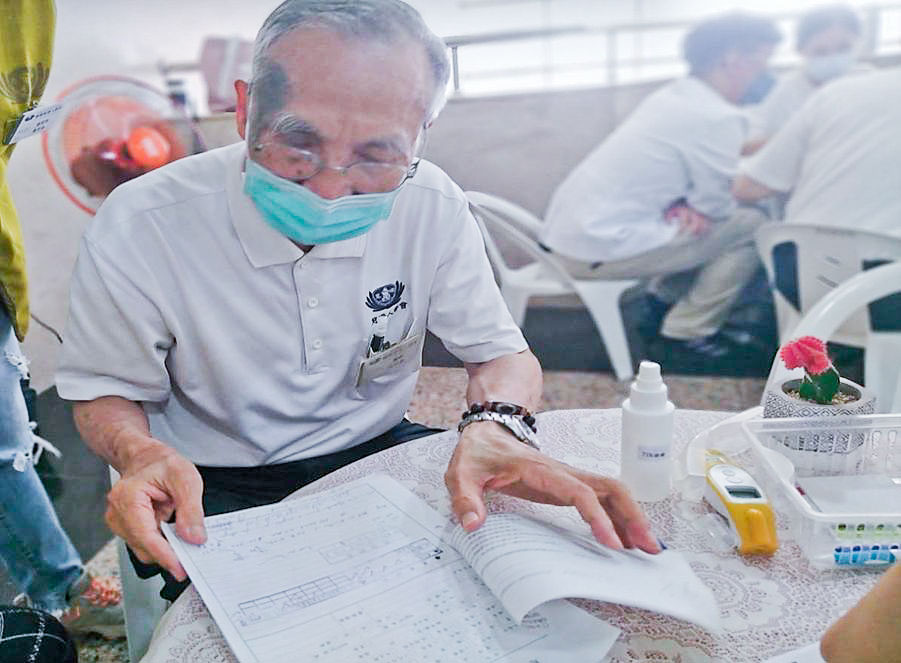 在外科區服務的洪宏典醫師,除了參與高屏地區的義診之外,也投入宣導衛教與預防醫學,殷勤走入社區關懷據點,為高齡長者傳授保健養生之道。這位年過八旬的資深人醫笑稱「老人家比較了解老人家的狀況」,四處上課當老師,加上有太太陪伴當助教,生活有重心很有意義。