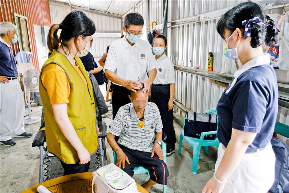 北區人醫張却中醫師帶隊嶺腳南線往診關懷,悉心為病人診療。攝影/張嫦娥