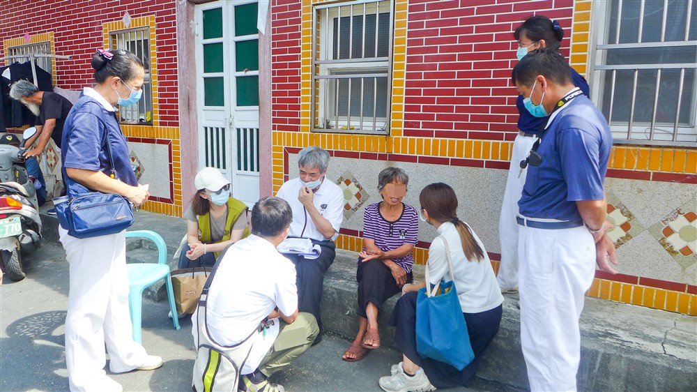 王先生照顧臥床二十多年的母親,直至老人家上個月逝世,目前尚在調適獨居生活,打算過些日子出去找工作。人醫團隊到訪,為他進行身體檢查,針對其眼疾、膝關節退化等問題,多加關心並給予專業醫療建議,讓他對自己的健康照護有個方向,志工們在旁也吸收到許多衛教常識。臨別前,團隊祝福王先生順利找到合適的工作,走出喪母之痛。