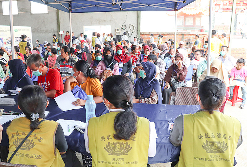 十一月五日印尼慈濟人醫會在杜庫村的威靈宮前舉辦大型義診,鄰近村民把握機會前來就醫。