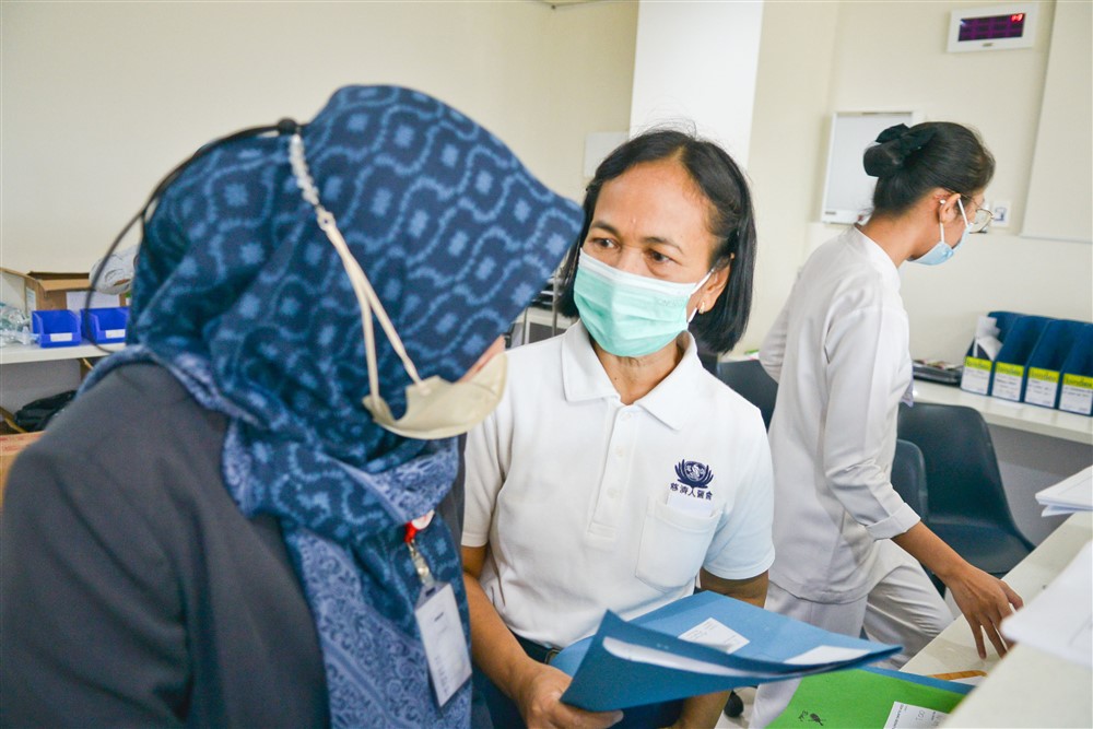 印尼慈濟人醫會阿德護理師在義診現場服務。